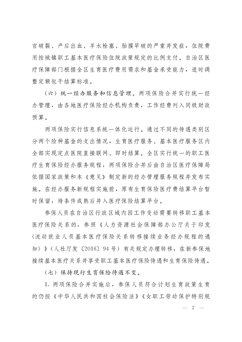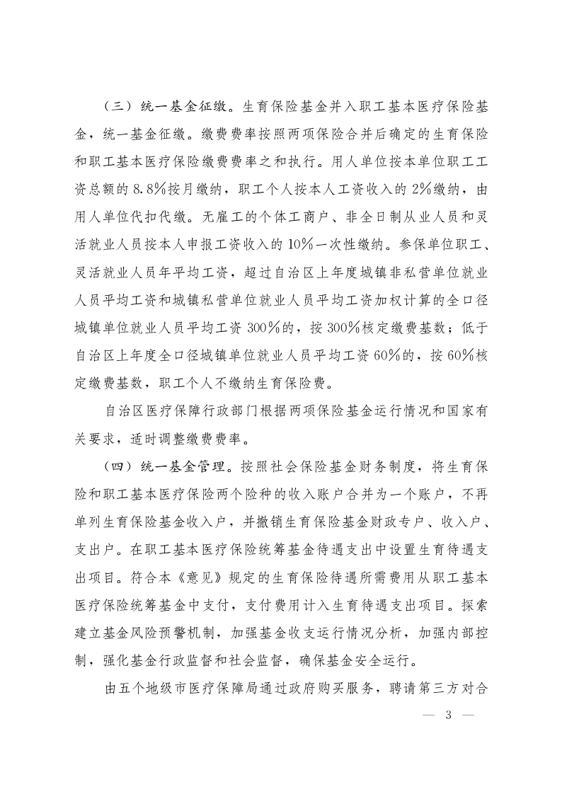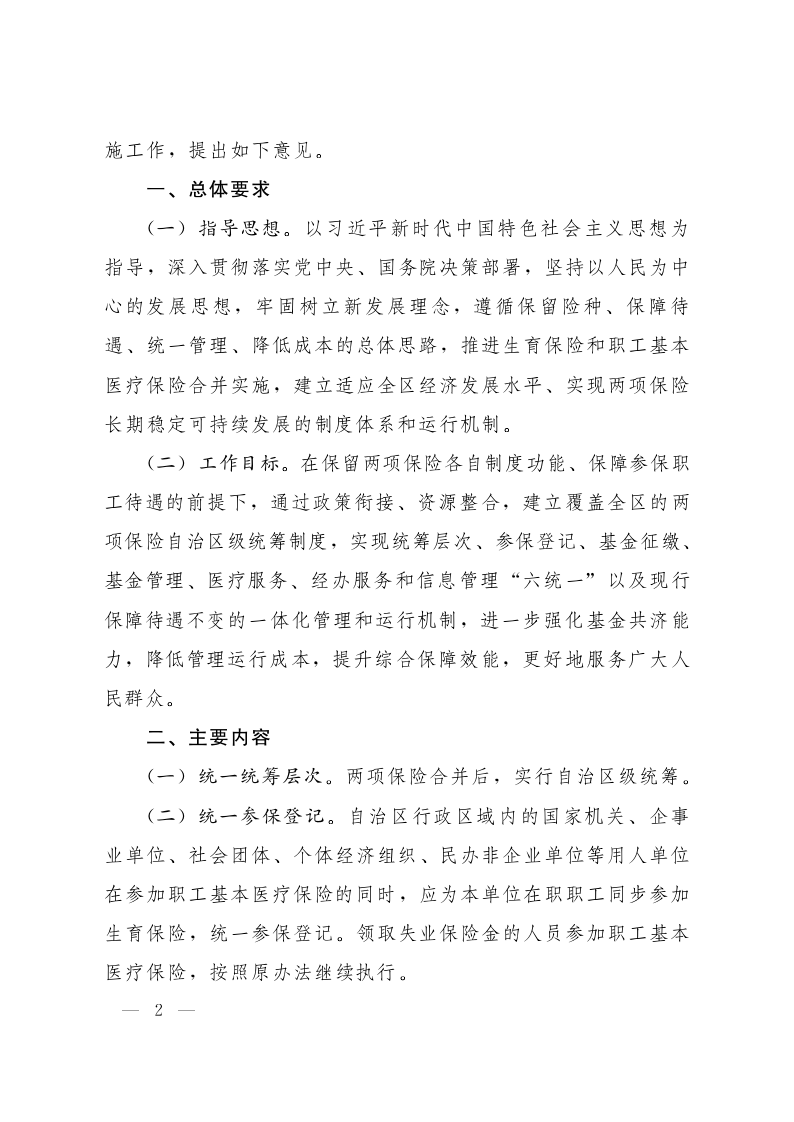 自治区人民政府办公厅关于生育保险和职工基本医疗保险合并实施的意见