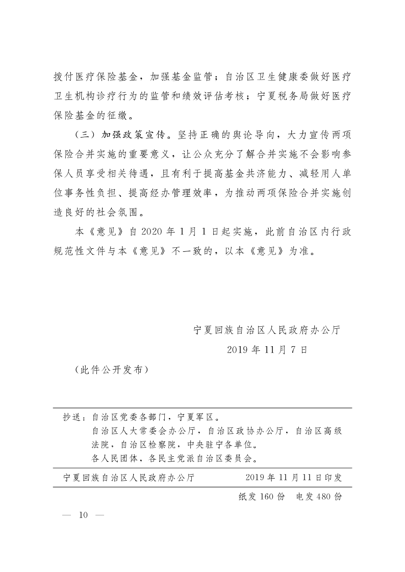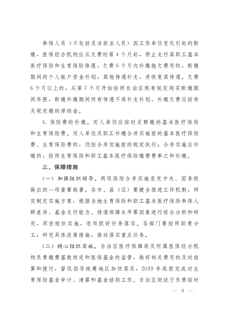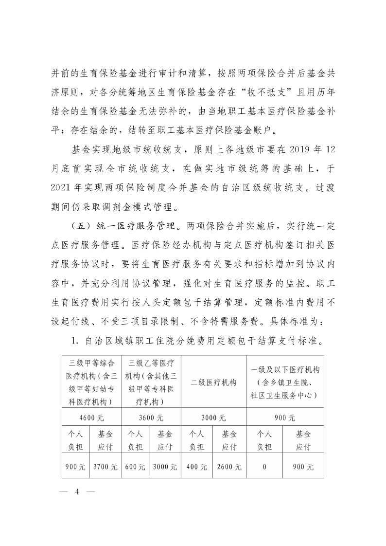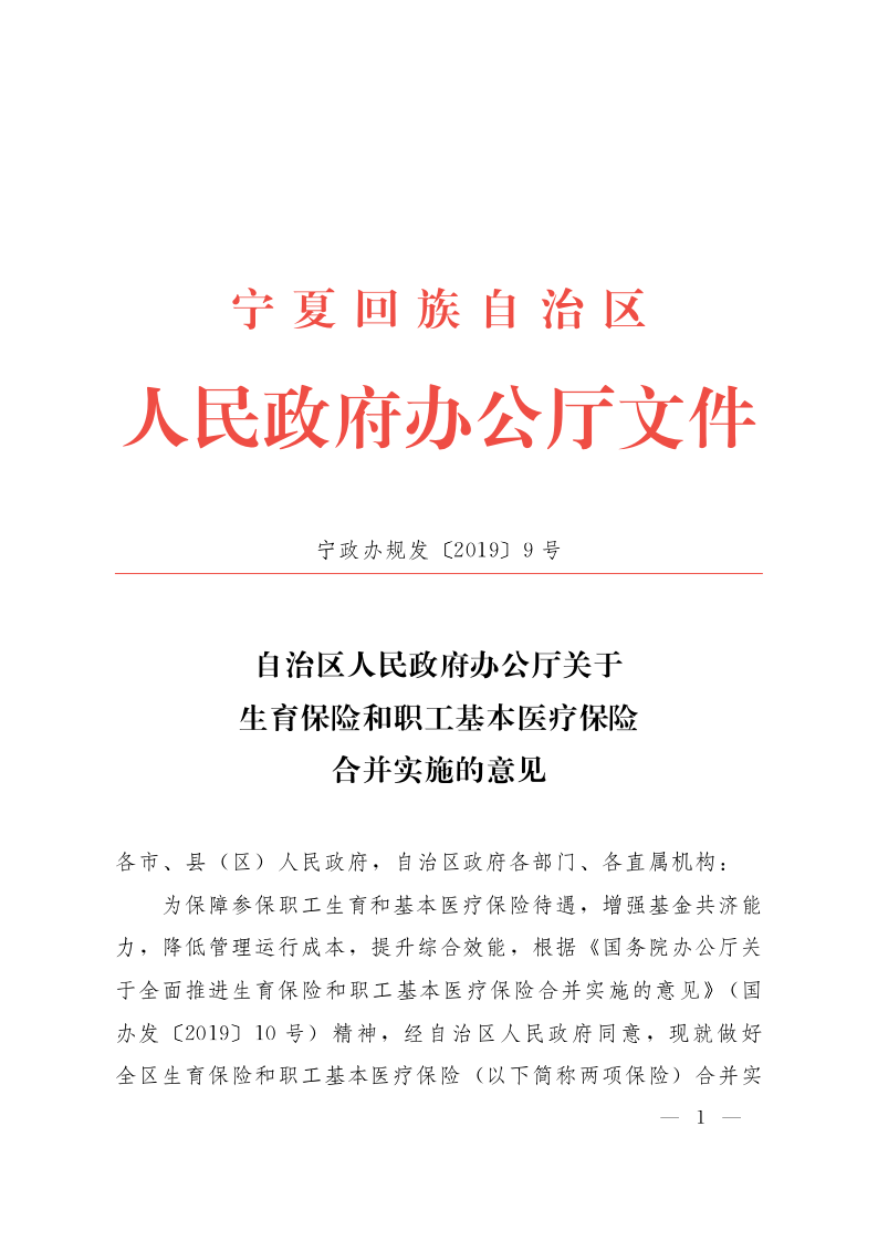 自治区人民政府办公厅关于生育保险和职工基本医疗保险合并实施的意见